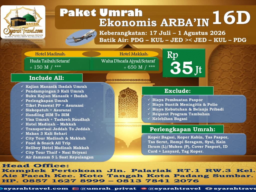 - Perlengkapan Umrah Tambahan Diluar Paket