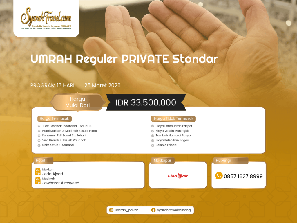 - Semua Pembayaran Biaya PIU Dianggap Sah Hanya Yang Ditransfer Ke Rekening Resmi PT. Syarah Travel Minang Internasional.